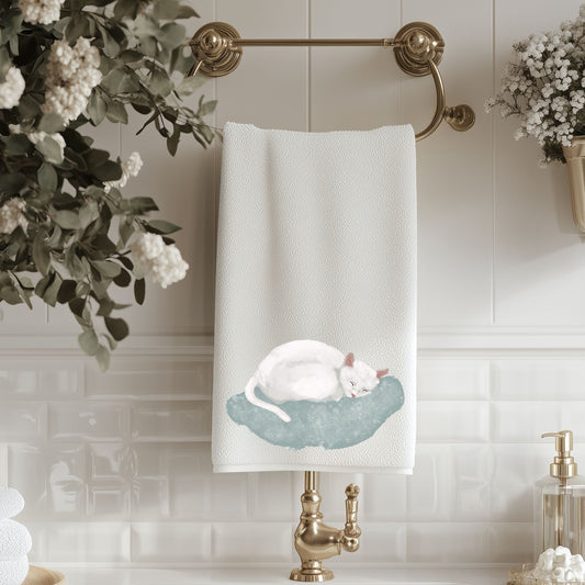 Sleeping White Cat Bathroom Towel