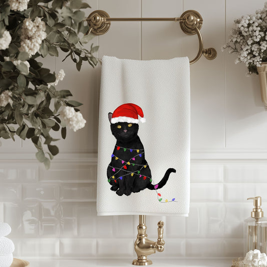 Christmas Black Cat Bathroom Towel