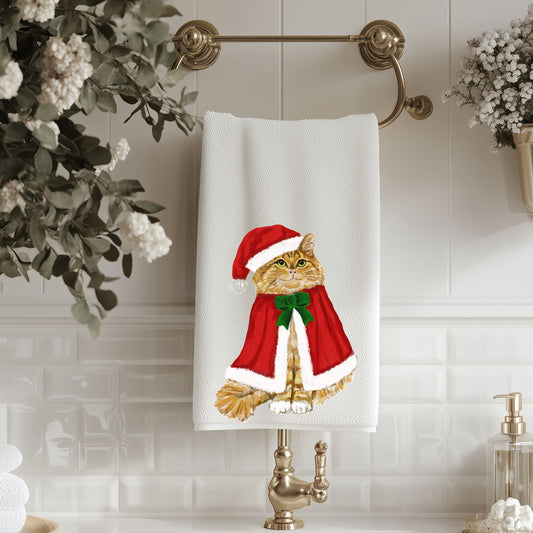 Christmas Ginger Tabby Cat Bathroom Towel