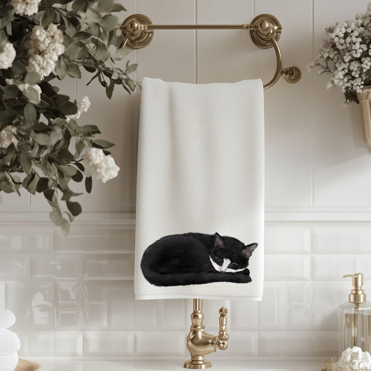Sleeping Tuxedo Cat Bathroom Towel