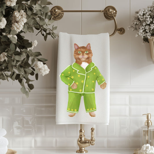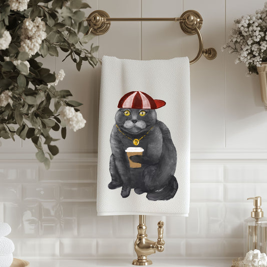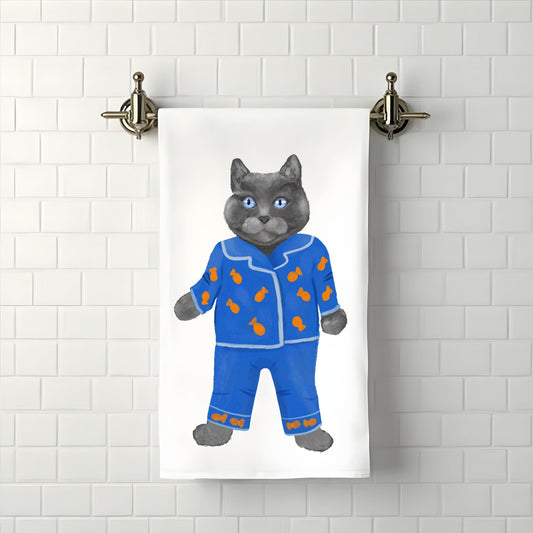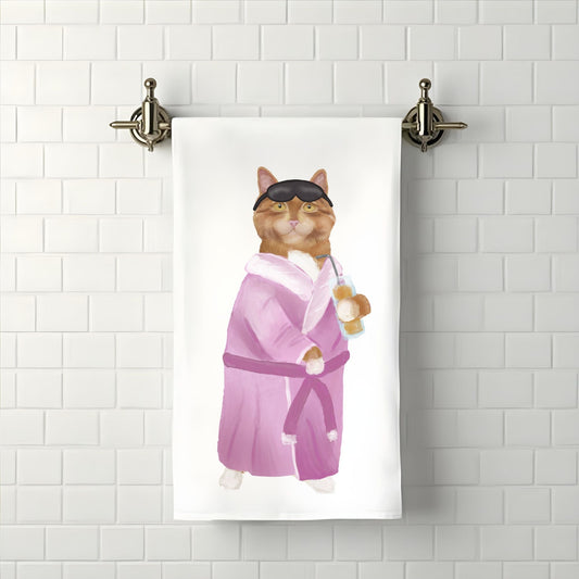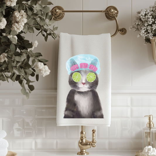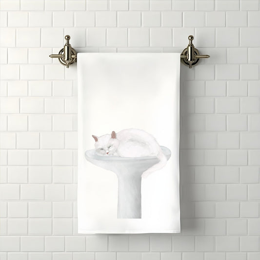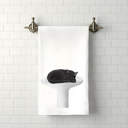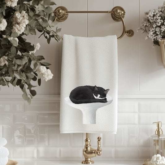 Tuxedo Cat Sleeping on Sink Bathroom Towel