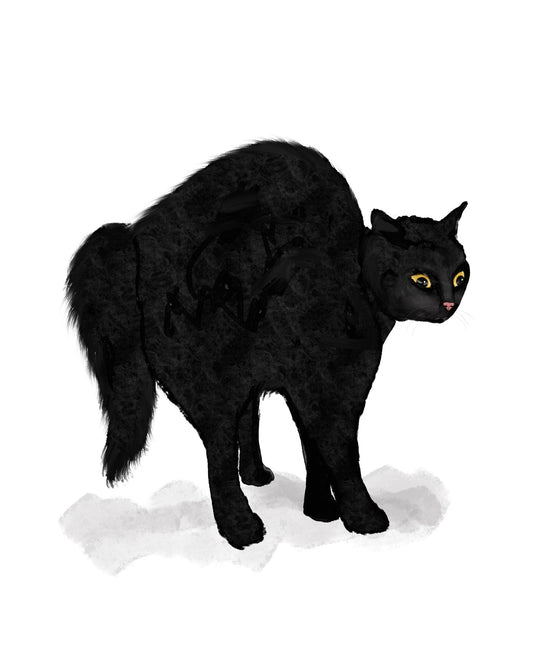 Scared Black Cat Print, Halloween Black Cat Artwork, Feral Cat Drawing, Cat Illustration, Defensive Black Cat Painting, Holiday Wall Art