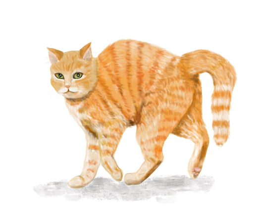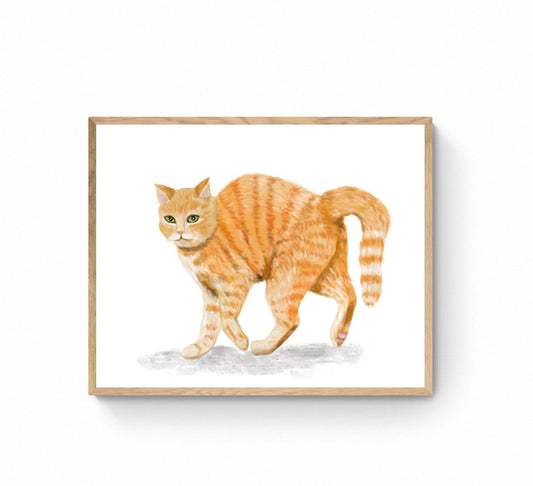 Scared Orange Cat Print, Halloween Tabby Cat Artwork, Feral Cat Drawing, Cat Illustration, Defensive Ginger Cat Painting, Holiday Wall Art