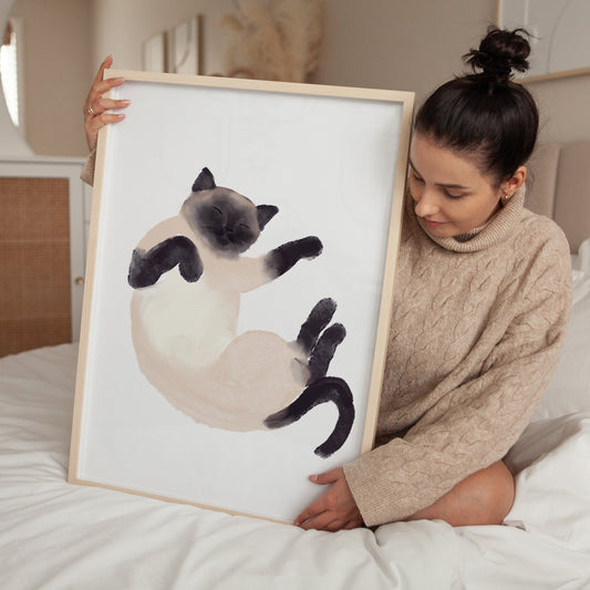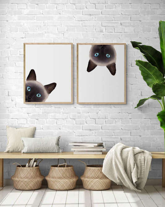 Peekaboo Siamese Cat Art Print Set of 2 – Playful Wall Decor