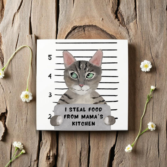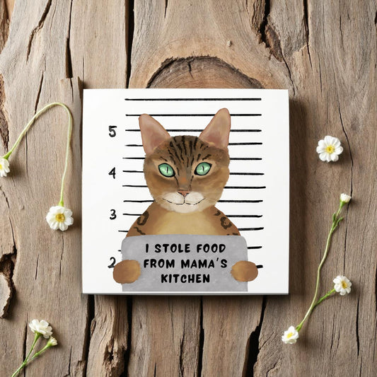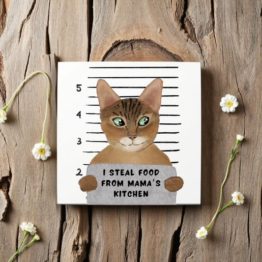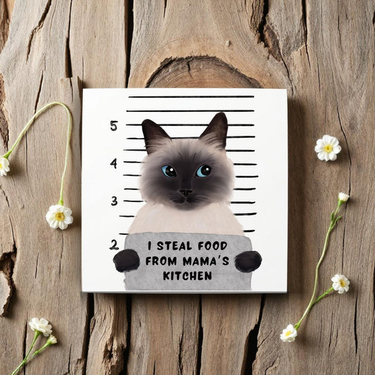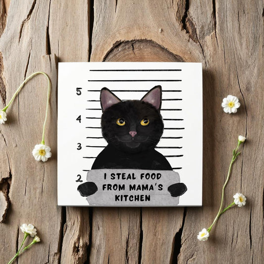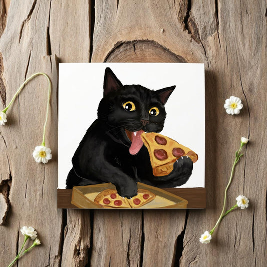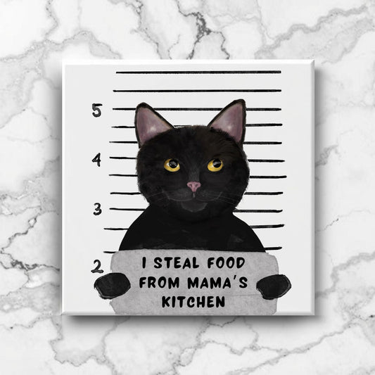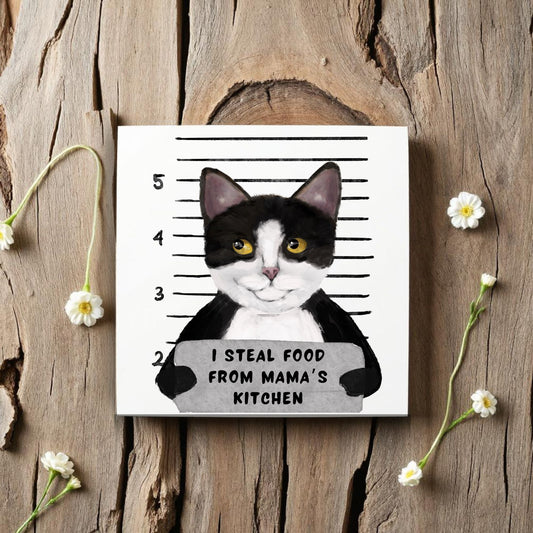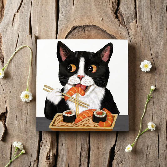 Tuxedo Cat Eating Sushi Ceramic Tile