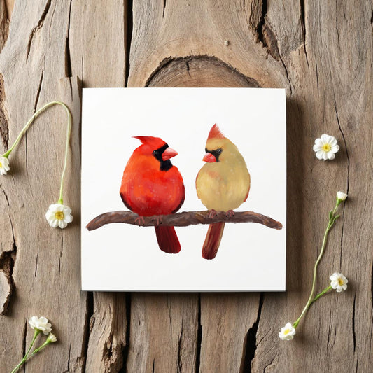 Pair of Northern Cardinals Ceramic Tile – Handcrafted Bird Lover Artwork