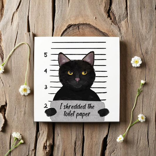 Black Cat Mugshot Ceramic Tile – Handcrafted Whimsical Pet Art Decor