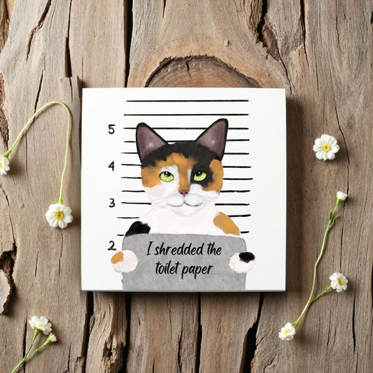 Tortie Cat Mugshot Ceramic Tile – Handcrafted Whimsical Pet Art Decor