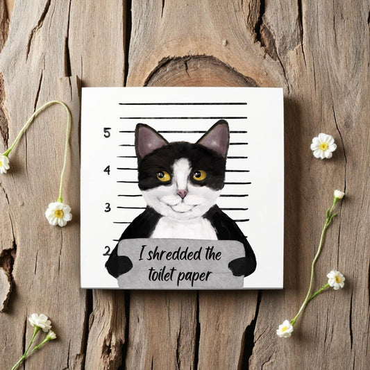 Tuxedo Cat Mugshot Ceramic Tile – Handcrafted Whimsical Pet Art Decor