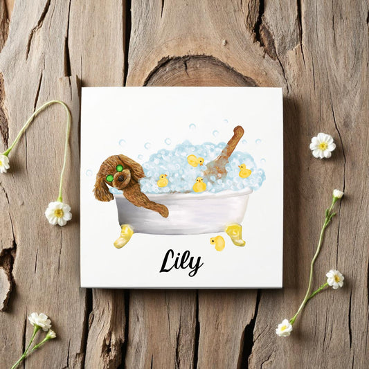 Poodle in Bathtub Ceramic Tile – Handcrafted Whimsical Pet Art Decor