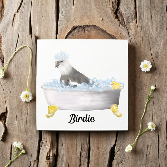 Blue Budgie Ceramic Tile – Handcrafted Whimsical Bird Art Decor