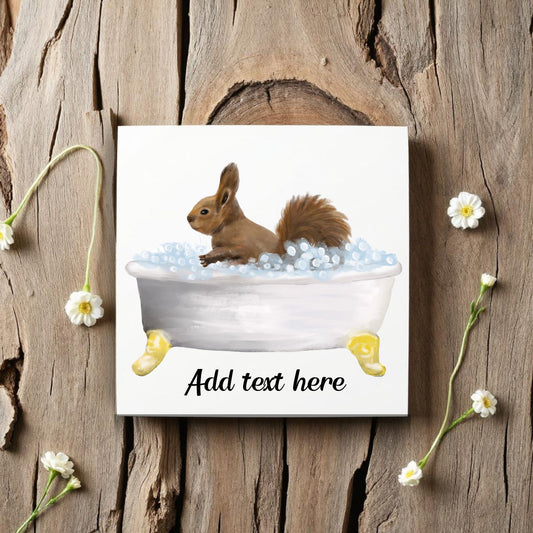 Bathing Squirrel Ceramic Tile – Handcrafted Woodland Decor