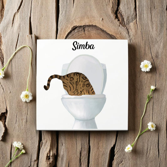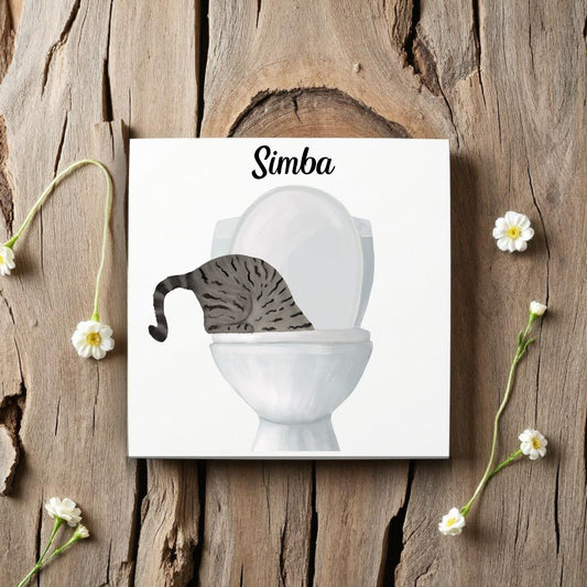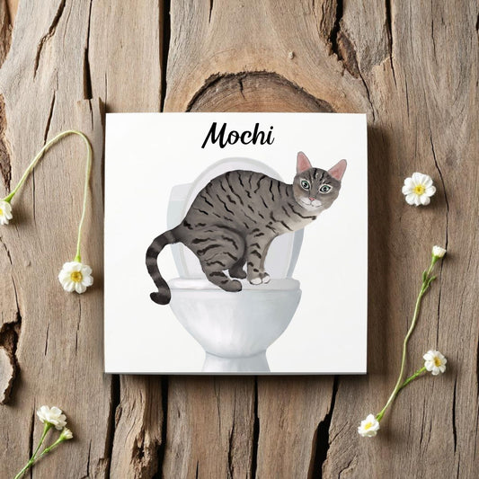 Tabby Cat on Toilet Ceramic Tile – Handcrafted Feline Humor Decor