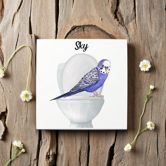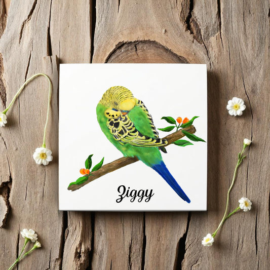 Blue Budgie Ceramic Tile – Handcrafted Bird Lover Decor