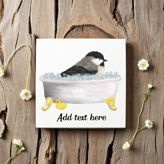Chickadee in Bathtub Ceramic Tile – Handcrafted Bird Lover Decor