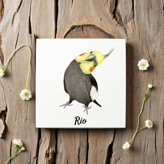 Curious Cockatiel Ceramic Tile – Handcrafted Bird Art Decor