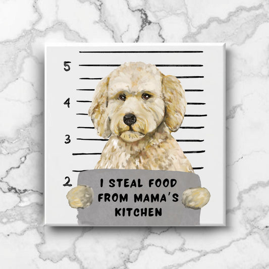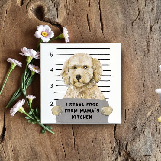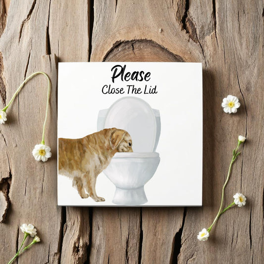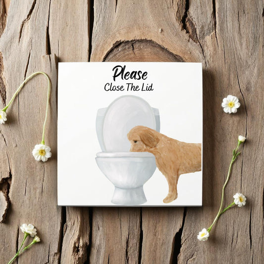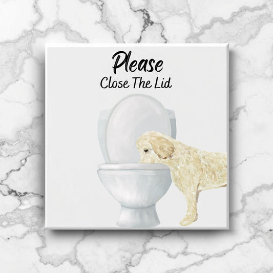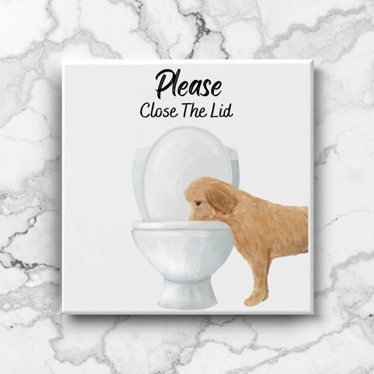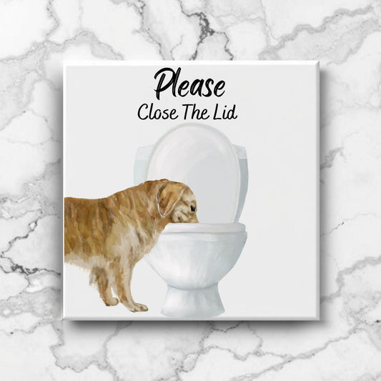 Cream Golden Retriever Close The Lid Ceramic Tile