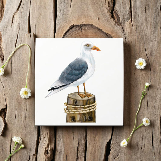 Herring Gull on Dock Ceramic Tile