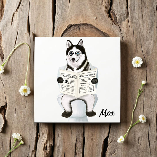 Husky Dog Reading Newspaper Bathroom Ceramic Tile