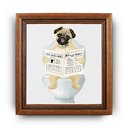 Pug Dog Reading Newspaper Bathroom Ceramic Tile