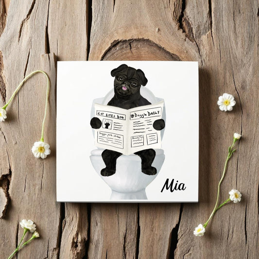 Personalized Pug Dog Reading Newspaper Bathroom Ceramic Tile