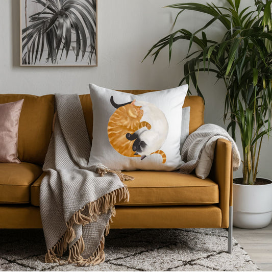Sleeping Orange Tabby and Siamese Cat Pillow