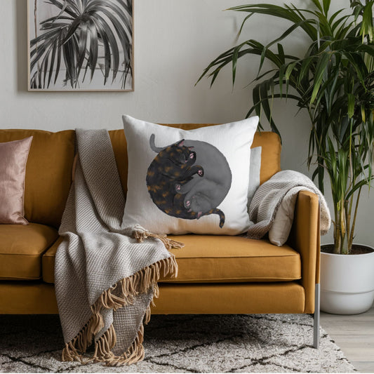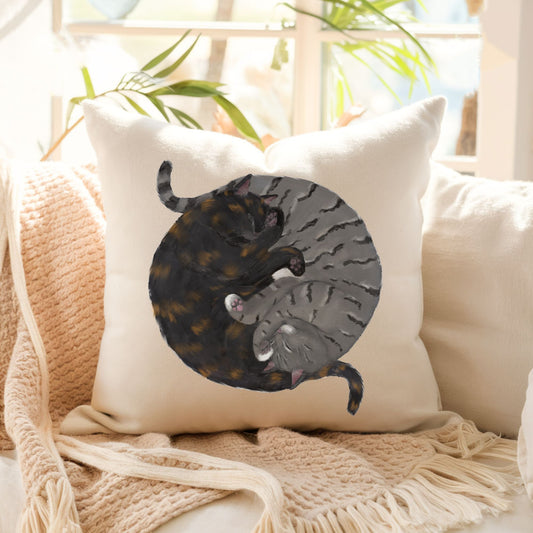 Sleeping Tortoiseshell and Grey Cat Pillow
