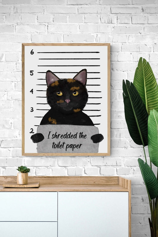 Personalized Tortie Cat Mugshot Art Print