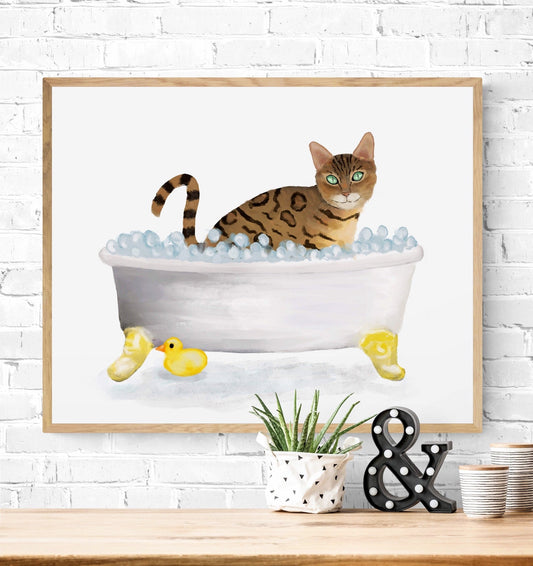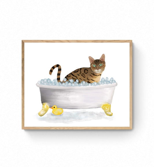 Gold Bengal Cat Bubble Bath Art Print
