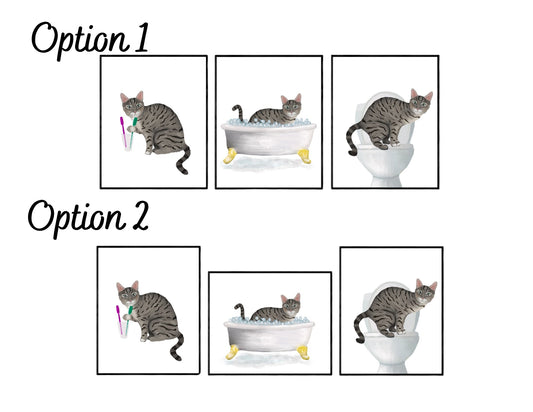 Gray Tabby Cat In Bathroom Art Print - Set of 3