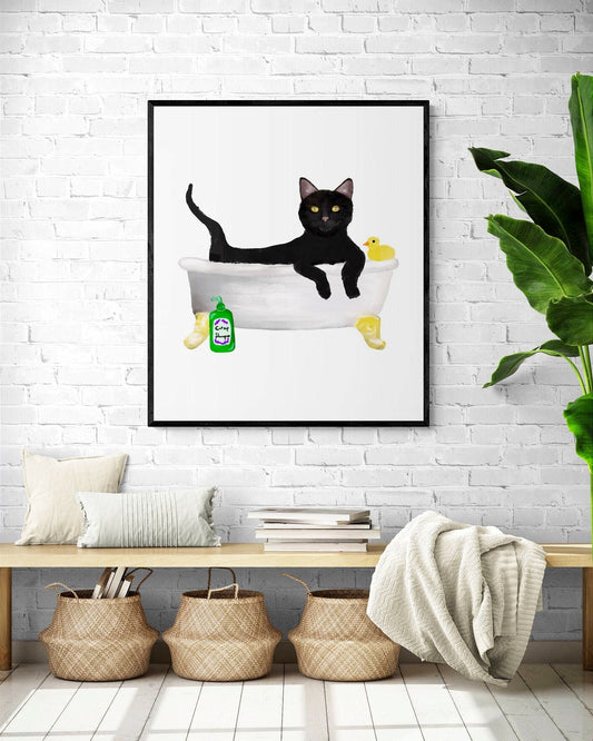 Black Cat in Bathtub – Fun and Unique Cat Art Print