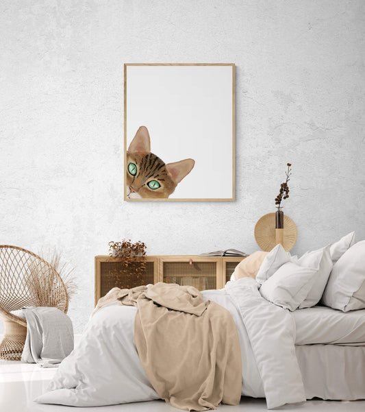 Personalized Gold Bengal Cat Art Print – Custom Peekaboo Design