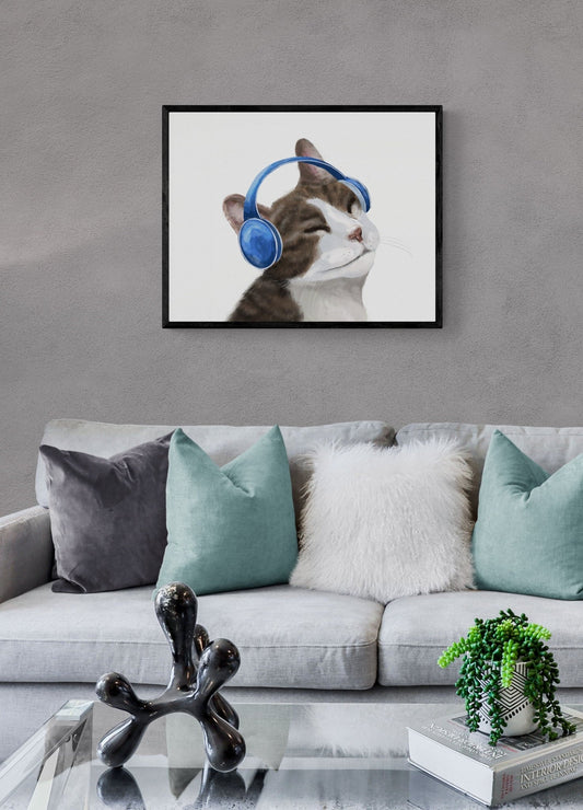 Tabby Cat with Headphones – Relaxing and Fun Cat Art Print