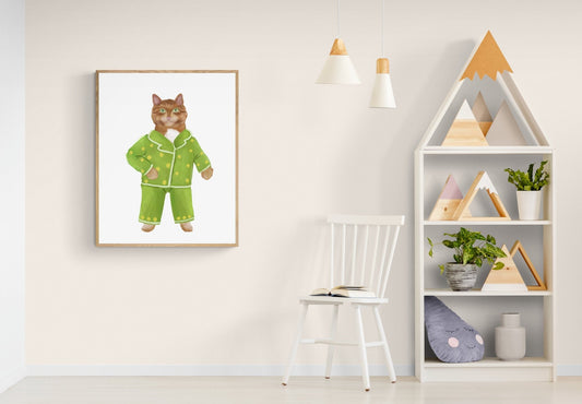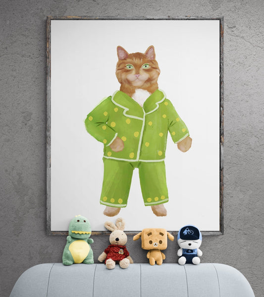 Ginger Cat in Pajamas – Playful and Fun Cat Art Print