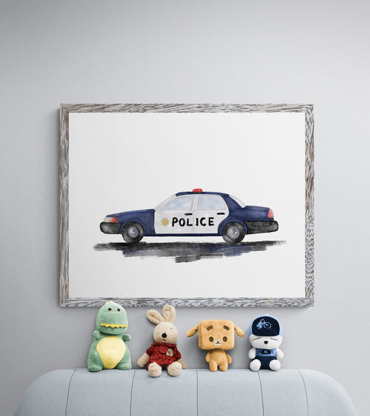 Original Police Car Art Print, Police Car Painting, Nursery Room Wall Art, Police Car Wall Art, Boys Room Art, Transportation Wall Print