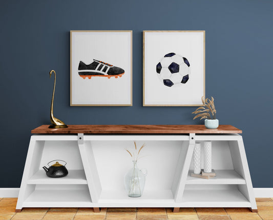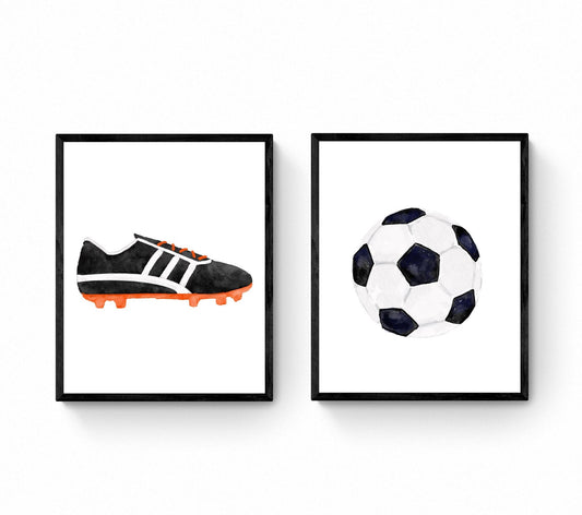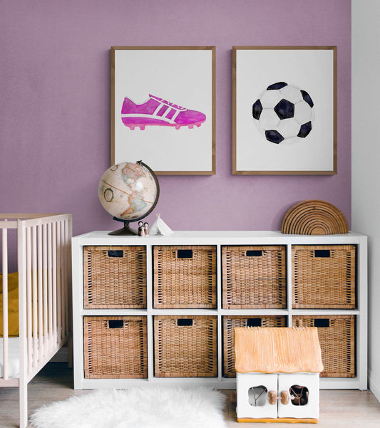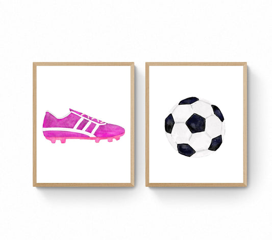 Soccer Shoes and Ball Set of 2 Print, Sport Painting, Boys Room Wall Art, Girls Room Gift, Soccer Cleats, Kids Wall Art, Nursery Decor