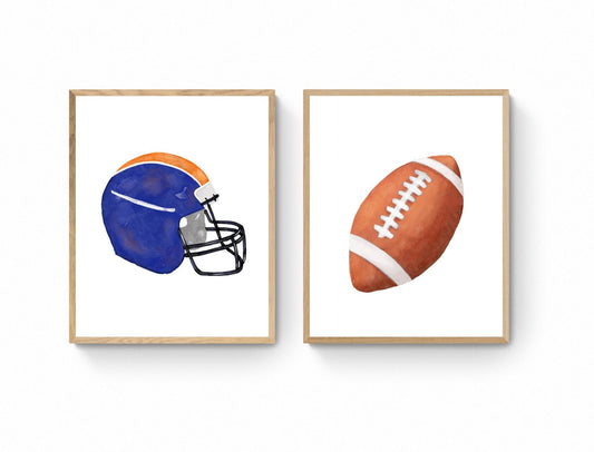 Set of 2 American Football Print, Sport Painting, Football Helmet, Boys Room Gift, Kids Wall Art, Nursery Decor, Sports Lover Drawing
