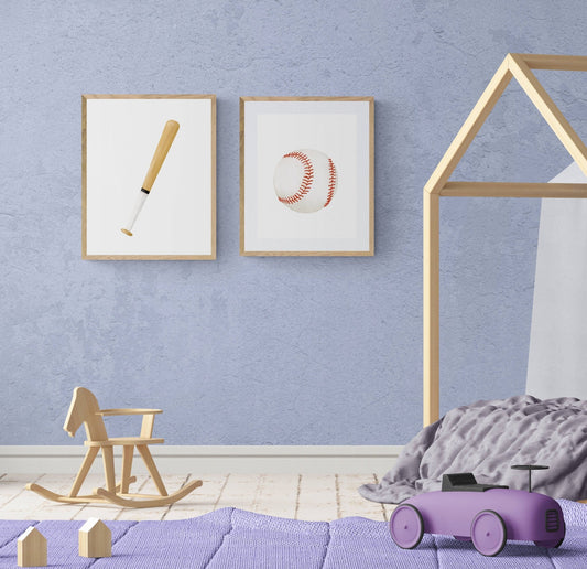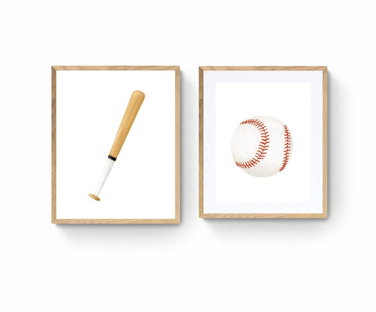 Set of 2 Baseball Bat and Ball Print, Sport Painting, Boys and Girls Room Wall Art, Kids Gift, Kids Art, Nursery Decor, Sports Lover Drawing