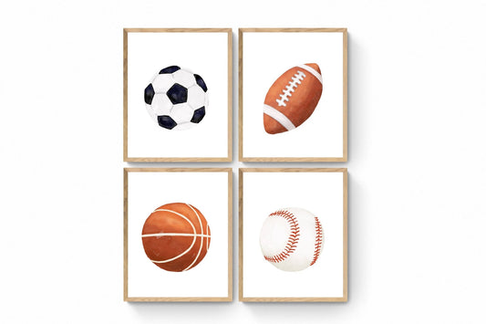 Set of 4 Sports Ball Prints, Sport Painting, Boys Room Wall Art, Girls Room Print, Kids Wall Art, Nursery Decor, Sports Lover Illustrations