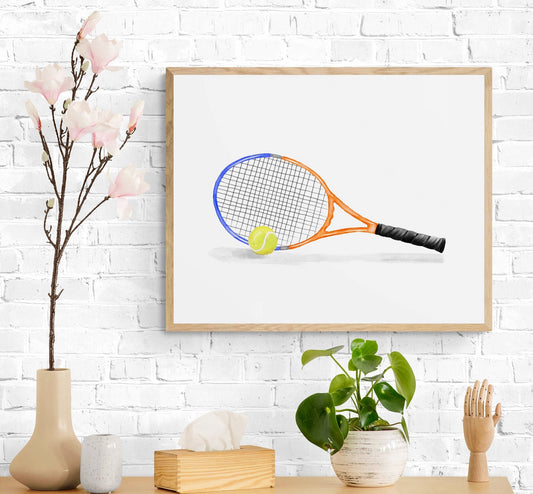 Tennis Racket Print, Sport Painting, Orange Racket Wall Art, Girls Boys Room Print, Kids Wall Art, Nursery Decor, Sports Lover Drawing