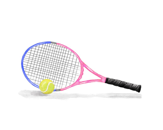 Tennis Racket Print, Sport Painting, Pink Racket Wall Art, Girls Room Print, Kids Wall Art, Nursery Decor, Sports Lover Drawing