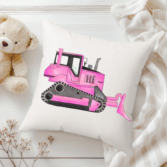 Personalized Pink Bulldozer Kids Pillow
