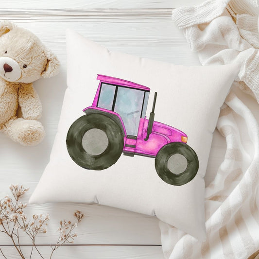 Personalized Pink Tractor Kids Pillow
