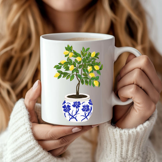 Elegant Lemon Tree Mug with Decorative Pot Design