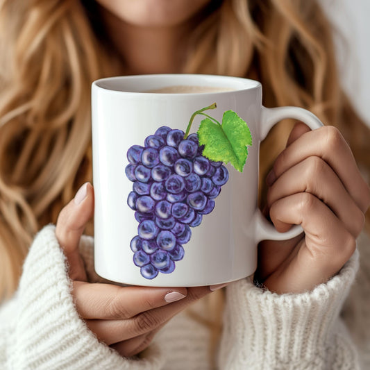 Elegant Purple Grape Mug with Botanical Fruit Art
