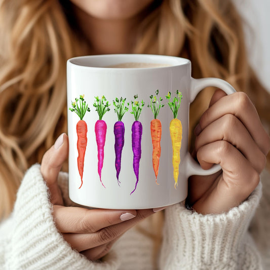 Vibrant Carrot Mug with Rainbow Vegetable Art