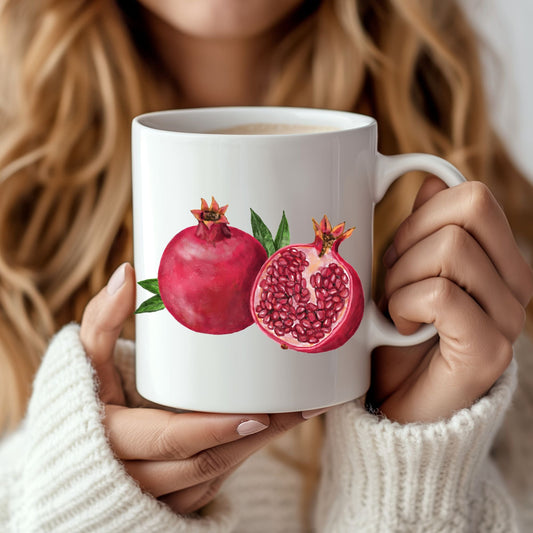 Vibrant Pomegranate Mug with Fresh Fruit Art