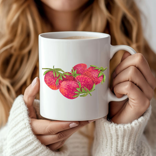 Vibrant Strawberry Mug with Fresh Fruit Art