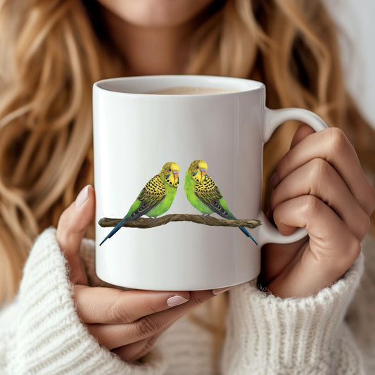 Budgie Pair Mug with Adorable Bird Illustration