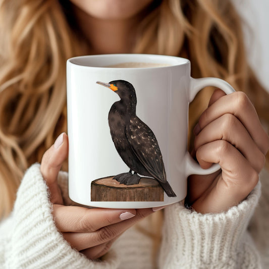 Cormorant Bird Mug with Artistic Illustration
